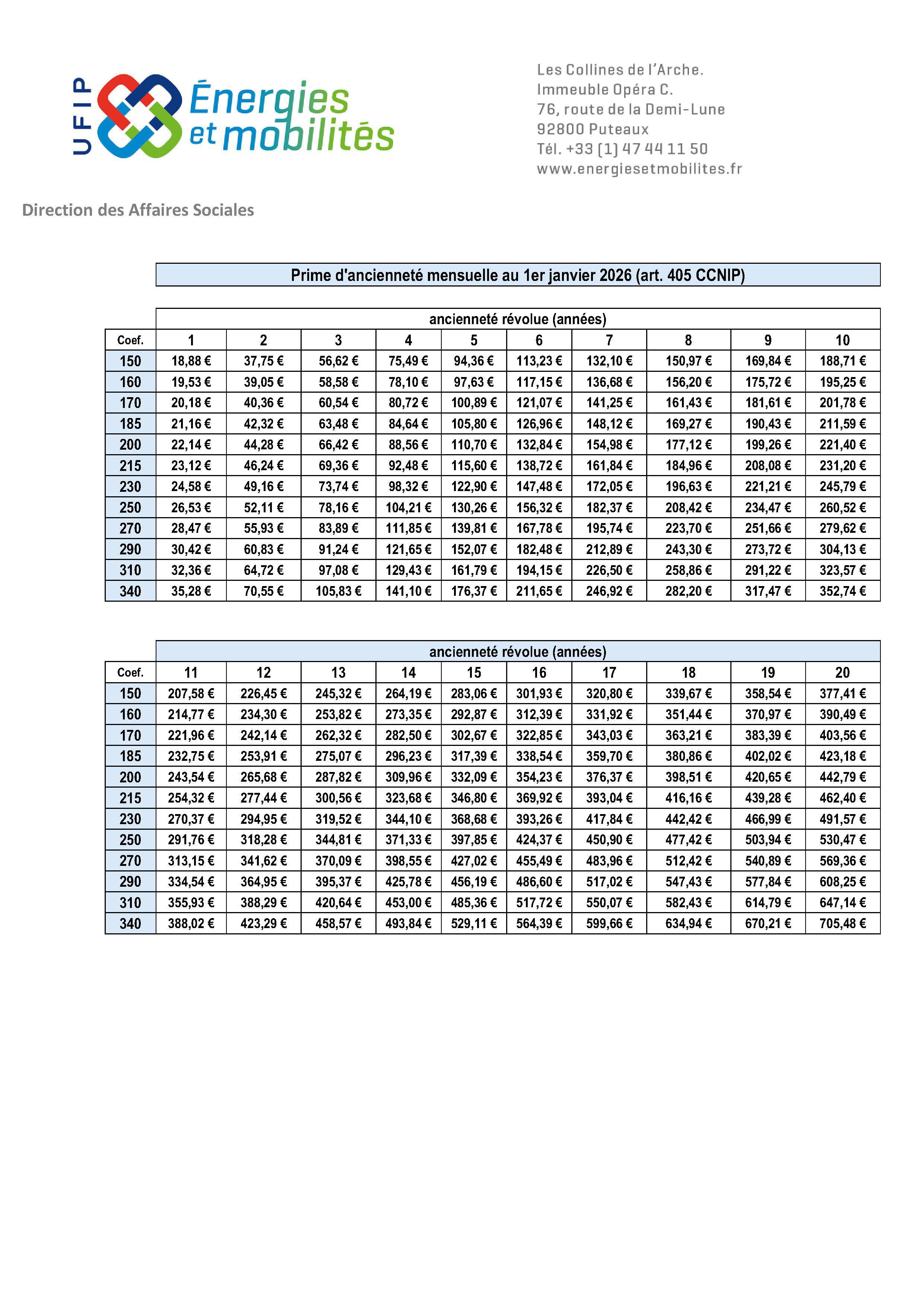 UFIP - Barème 2026